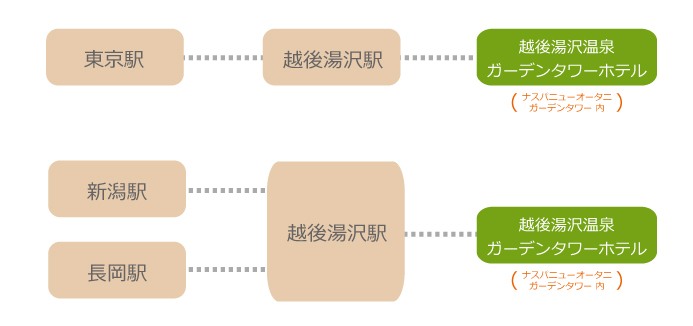 Approximately 1 hour by Joetsu Shinkansen from JR Niigata Station